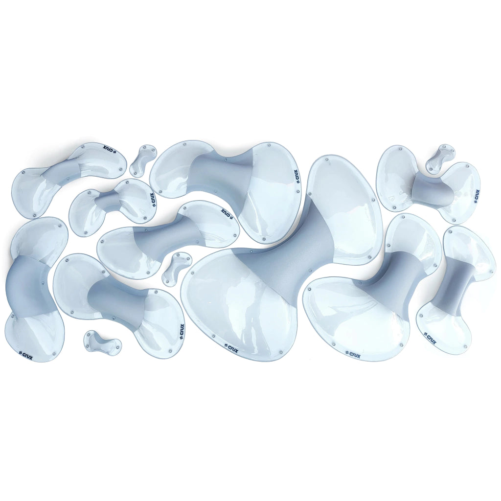 Set of 14 pinches produced from recycled plastic provide incredible variety of pinching holds. These dual texture grips are perfectly finished and very practical to use. The material can be fully recycled after disposal.